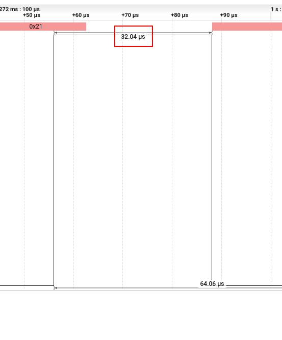 When opening the file in Logic 2, we can easily spot the bit duration, and identify the Bit rate: